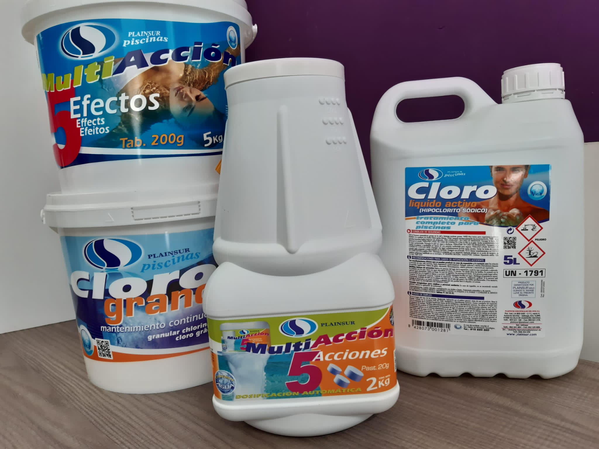Nuestro cloro Multiacción 5 acciones dispone de un tratamiento completo :Desinfectante – Alguicida – Clarificante – Estabilizador de cloro – Antihongos.